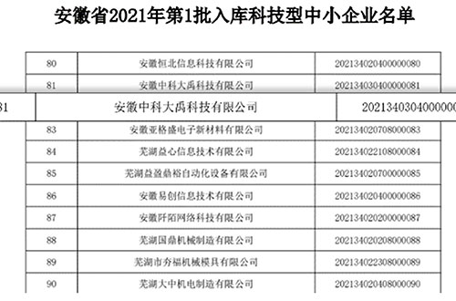 入選2022年度安徽省專精特新中小企業 入選2022年度安徽省創新型中小企業名單
